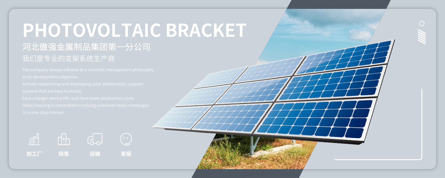 河北傲強金屬制品集團第一分公司 ,擁有1萬平米的生產車間,建有光伏支架及各種配件生產線、熱鍍鋅車間。主營業務為光伏支架、綜合支架的研發、設計、生產、安裝服務,集研發、生產、銷售于一體的科技生產型企業,擁有完善的售后服務體系。主營產品包括各種光伏支架(地面支架系統、屋頂支架系統、可調解式支架系統)及支架配件。公司始終以科學的管理理念為發展宗旨,積極研發安裝便捷、使用壽命更長、生產成本更低廉的太陽能...